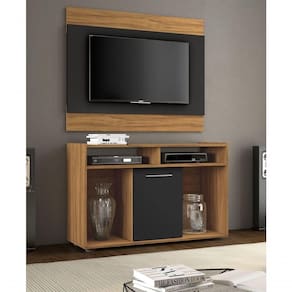 Rack Com Painel Show Freijó Com Preto - Notável Compacto, o Conjunto Show - Notável, é perfeito para os espaço pequenos. Além de ser completo para as necessidades da sua sala de TV, acompanha o painel e o rack, que irão acomodar perfeitamente seus aparelhos eletrônicos, e itens decorativos. Possui também uma porta, para auxiliar na organização dos itens, que precisar ficar ões do Produto montado-Painel:Altura: 85 cmLargura: 105 cmProfundidade: 35 cmObservações:- Ideal para TV de até 43 polegadas;- Pintura Ultravioleta com acabamento amadeirado na cor freijó trend.- Pintura Ultravioleta com acabamento fosco na cor preto ões do Produto montado-Rack:Altura: 68 cmLargura: 106 cmProfundidade: 36 cmObservações:- Porta articulada;- Puxador em alumínio;- Ideal para TV de até 43 polegadas;- Pintura Ultravioleta com acabamento amadeirado na cor freijó trend.- Pintura Ultravioleta com acabamento fosco na cor preto tx.