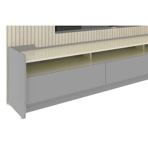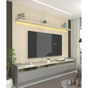 O Rack com Painel Sublime Ripado 3D com Led - Gelius Móveis, fazem-se ideais para deixar a sua sala de TV ainda mais charmosa, seu rack com alguns recortes de suas peças curvos, proporciona requinte e sofisticação ao ambiente. Conta com um amplo tampo que promove para sua TV, nichos perfeitos para o apoio de eletrônicos. Além de duas gavetas, que ajudarão na organização do espaço. Já seu painel possui Painel com impressão ripado com efeito 3D, e uma prateleira, além de amplo espaço para posicionar sua TV.