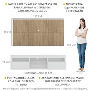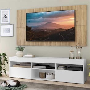 Rack com Painel TV 65" com 2 portas Londres Multimóveis Branco/Rustic