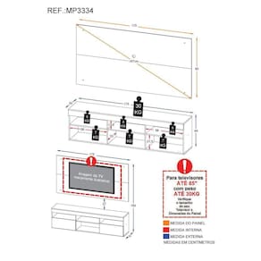 *Devido as variações de tamanho dos televisores no mercado, sugerimos que verifique as medidas da sua TV e compare com o painel antes de efetuar a compra.