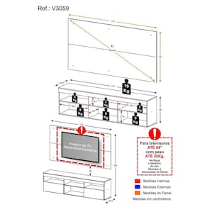 Devido as variações de tamanho dos televisores no mercado, sugerimos que verifique as medidas da sua TV e compare com o painel antes de efetuar a compra.