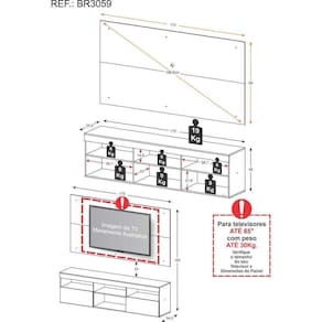 Devido as variações de tamanho dos televisores no mercado, sugerimos que verifique as medidas da sua TV e compare com o painel antes de efetuar a compra.