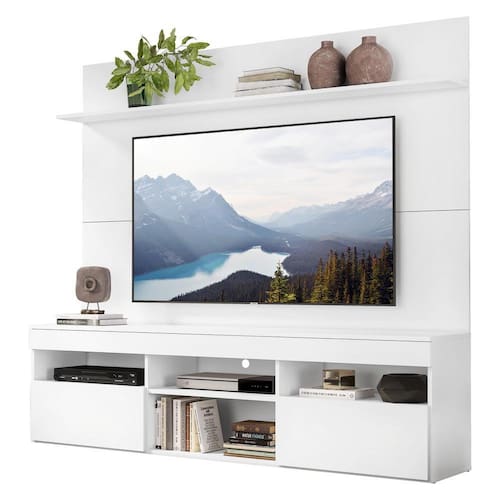 O Rack com Painel TV 65" Madri Multimóveis é produzido em MDP com acabamento acetinado (cerca de 20% de brilho), que garante maior durabilidade e facilidade na limpeza, possui 4 nichos com espaço para os equipamentos eletrônicos, além de 2 portas articuladas com um amplo espaço interno para manter seus pertences organizados. O painel para TV de até 65 (suporta até 30 Kg) com espaçamento para passagem dos fios, que permite deixar os cabos mais organizados e o visual clean, ainda possui uma prateleira para os objetos decorativos. Seu ambiente bonito e confortável para curtir os melhores filmes e séries.