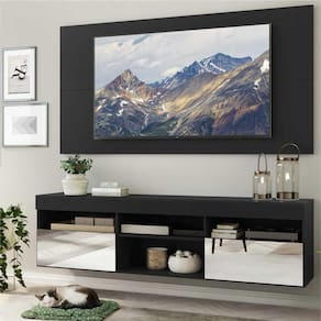 O Rack com Painel TV 65" Suspenso com Espelho Londres Multimóveis é produzido em MDP com acabamento acetinado, que garante maior durabilidade e facilidade na limpeza. Possui 4 nichos com espaço para os equipamentos eletrônicos e objetos decorativos, além de 2 portas articuladas com espelho e um amplo espaço interno para manter seus pertences organizados e ainda acompanha kit para ser montado de forma suspensa, conforme a altura que você quiser do chão. Os espelhos de vidro (evita que a imagem fique distorcida) e lapidados, ou seja, passam por um processo para que as bordas não fiquem cortantes, o que garante maior segurança, deixam o móvel mais requintado. O painel para TV de até 65 (suporta até 30 Kg) possui espaçamento para passagem dos fios, que permite deixar os cabos mais organizados e o visual clean. Seu ambiente bonito e confortável para curtir os melhores filmes e séries.