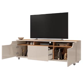 Feito em MDP 12/15mm. Possui 2 portas, 3 nichos, 1 gaveta com corrediças telescópicas e 5 pés com rodízios.