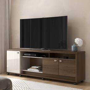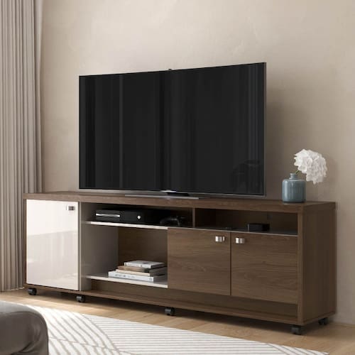 Rack para TV até 75 polegadas Dallas com 3 Portas e Rodízios Imbuia/Off White - Lukaliam