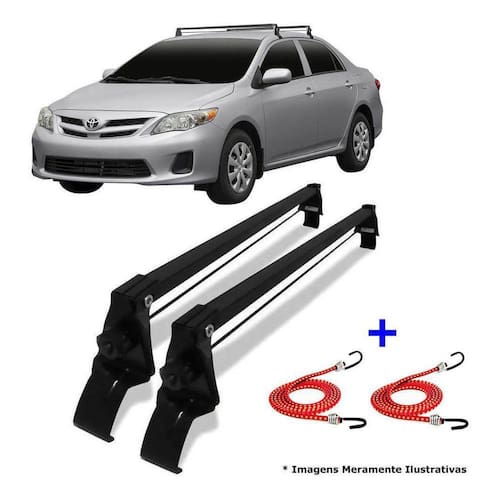 Rack de teto bagageiro + 2 elasticos corolla ano 03/08 A vhip desenvolveu esse rack sob rigoroso controle de qualidade, cujo processo industrial, segue os padrões de segurança, com acompanhamento e supervisão técnica contínua, visando proporcionar ao consumidor, uma excelente alternativa no transporte de bagagens ou cargas. Especificação técnica: Projetado e desenvolvido para suportar até 45 kg de peso máximo, desde que distribuído de forma uniforme e equilibrada; Manual de instruções, para orientar a montagem, sua capacidade de transporte, regras de utilização e outros informes; Não amassa e nem risca o veículo; Cor preto; Fabricado em aço; Não exige furações; Fácil instalação; Ótimo acabamento; Excelente resistência. Ficha técnica: fabricante: vhip; material: ferro tubular / aço; capacidade de carga do rack: 45kg distribuídos cor: preto. Conteúdo da embalagem: 2 racks dianteiro + traseiro ; kit instalação; manual; 2 elasticos extensor. Atenção:O envio do elastico extensor ocorre de forma aleatória, conforme disponibilidade de cores em estoque Instalação do produto:Nossos produtos acompanham manual de instalação, se por algum motivo não conseguir instalar, favor entrar em contato conosco atraves do bilhete colado na caixa do produto. Temos uma equipe especializada para te ajudar.