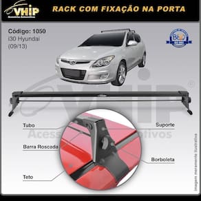 Rack de Teto Bagageiro Hyundai i30 2009 ate 2013 A VHIP desenvolveu esse rack sob rigoroso controle de qualidade, cujo processo industrial, segue os padrÃes de seguranÃa, com acompanhamento e supervisÃo tÃcnica contÃnua, visando proporcionar ao consumidor, uma excelente alternativa no transporte de bagagens ou cargas.  Especificaãão TÃCNICA:  Projetado e desenvolvido para suportar atà 45 kg de peso mÃximo, desde que distribuÃdo de forma uniforme e equilibrada;  Manual de instruÃÃes, para orientar a montagem, sua capacidade de transporte, regras de utilizaÃÃo e outros informes;  NÃo amassa e nem risca o veÃculo;  Cor preto;  Fabricado em AÃo;  NÃo exige furaÃÃes;  FÃcil instalaÃÃo;  Ãtimo acabamento;  Excelente resistÃncia.  FICHA TÃCNICA:  Fabricante: VHIP;  Material: Ferro Tubular / AÃo;  Capacidade de carga do rack: 45kg distribuÃdos  Cor: Preto.  Conteãdo DA EMBALAGEM:  2 Racks dianteiro + traseiro ;  Kit InstalaÃÃo;  Manual.