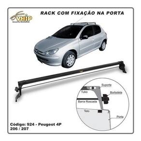 Rack De Teto Peugeot 206 207 4 Pts 99 00 01 02 03 04 05 A 15 Cor: Preto A VHIP desenvolveu esse rack sob rigoroso controle de qualidade, cujo processo industrial, segue os padrões de segurança, com acompanhamento e supervisão técnica contínua, visando proporcionar ao consumidor, uma excelente alternativa no transporte de bagagens ou cargas. ESPECIFICAÇÃO TÉCNICA: Projetado e desenvolvido para suportar até 45 kg de peso máximo, desde que distribuído de forma uniforme e equilibrada; Manual de instruções, para orientar a montagem, sua capacidade de transporte, regras de utilização e outros informes; Não amassa e nem risca o veículo; Cor preto; Fabricado em Aço; Não exige furações; Fixação na canaleta do teto; Fácil instalação; Ótimo acabamento; Excelente resistência. FICHA TÉCNICA: Fabricante: VHIP; Material: Ferro Tubular / Aço; Capacidade de carga do rack: 45kg distribuídos Cor: Preto. CONTEÚDO DA EMBALAGEM: 2 Racks dianteiro + traseiro ; Kit Instalação; Manual. INSTALAÇÃO DO PRODUTO:Nossos produtos acompanham manual de instalação, se por algum motivo não conseguir instalar, favor entrar em contato conosco. Temos uma equipe especializada para te ajudar.