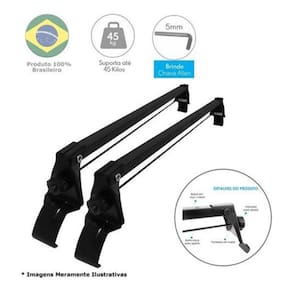 ESPECIFICAÇÃO TÉCNICA: Projetado e desenvolvido para suportar até 45 kg de peso máximo, desde que distribuído de forma uniforme e equilibrada; Manual de instruções, para orientar a montagem, sua capacidade de transporte, regras de utilização e outros informes; Não amassa e nem risca o veículo; Cor preto; Fabricado em Aço; Não exige furações; Fixação na canaleta do teto; Fácil instalação; Ótimo acabamento; Excelente resistência.