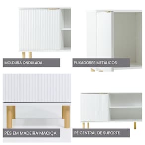 O rack Ditália é a opção ideal para elevar a decoração e funcionalidade da sua sala de estar. Com um design moderno e elegante, ele oferece espaço suficiente para organizar seus aparelhos eletrônicos, livros e objetos decorativos, mantendo o ambiente sempre em ordem. As portas possuem um acabamento ondulado, conferindo um toque único e sofisticado ao móvel. Além disso, os pés de madeira não só acrescentam um charme natural, mas também garantem estabilidade e durabilidade.