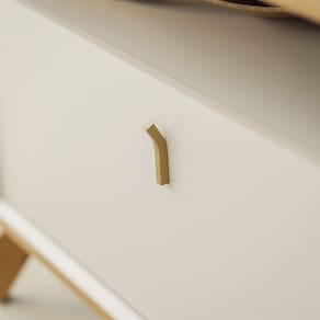 Nicho: 2 Passa Fios: 2 Porta: 2 portas basculantes em MDP com espessura de 15mm Tampo: 15mm material em MDP Pés: 4 pés de madeira em 12cm de altura Dobradiças: 4 dobradiça metálica Puxador: 2 puxadores de alumínio