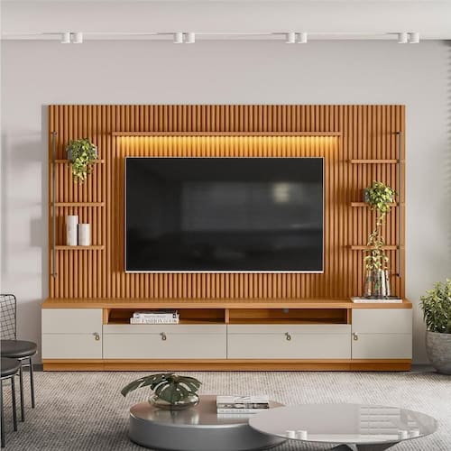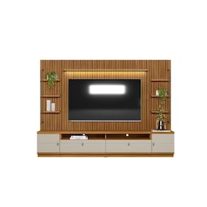 O módulo lateral poderá ser montado do lado direito ou esquerdo do móvel. Seu painel ripado e a fita de Led deixam a sua sala ainda mais moderna.