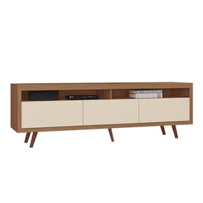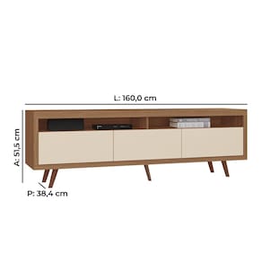 Apresentamos o Rack Edina. O rack exibe um design contemporâneo, sendo equipado com três portas basculantes que oferecem amplo espaço de armazenamento. Seu acabamento soft de 45° adiciona um toque de elegância ao móvel. Com cinco pés, proporciona estabilidade e durabilidade. Ideal para quem busca combinar funcionalidade e estilo na decoração da sala de estar ou ambiente similar.