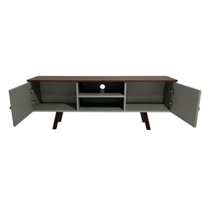 Rack Em MDF Com Nicho e Duas Portas Gramado/Pau ferro -
