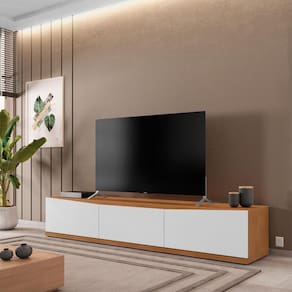 O Rack Eros esbanja beleza e requinte. Elabora com os melhores materiais do mercado, é ideal para sua sala. Possui um designer único, que conta com 2 portas e 1 gaveta com amplo espaço e. A frente de gaveta elaborada em MDP de 15mm usinada e corrediças telescópicas. O Tampo é feito em MDP de 37mm e a base em MDP de 25mm o proporciona ao móvel maior resistência e qualidade. Possui sapatas metálicas com regulagem de altura. Sua pintura conta com acabamento Print Wood, patenteado e exclusivo Casa D, garante ao produto maior qualidade e durabilidade como nenhuma no mercado possui.