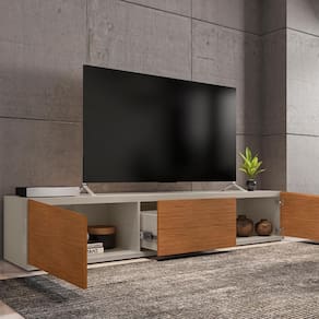 O Rack Eros esbanja beleza e requinte. Elabora com os melhores materiais do mercado, é ideal para sua sala. Possui um designer único, que conta com 2 portas e 1 gaveta com amplo espaço e. A frente de gaveta elaborada em MDP de 15mm usinada e corrediças telescópicas. O Tampo é feito em MDP de 37mm e a base em MDP de 25mm o proporciona ao móvel maior resistência e qualidade. Possui sapatas metálicas com regulagem de altura. Sua pintura conta com acabamento Print Wood, patenteado e exclusivo Casa D, garante ao produto maior qualidade e durabilidade como nenhuma no mercado possui.
