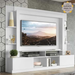 Rack Estante c/ Painel e Suporte TV 65" e 2 portas Oslo Multimóveis Branco