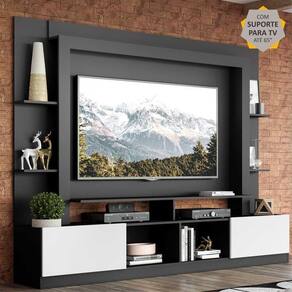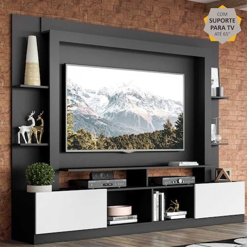 Rack Estante c/ Painel e Suporte TV 65" e 2 portas Oslo Multimóveis Preto/Branco - Preto