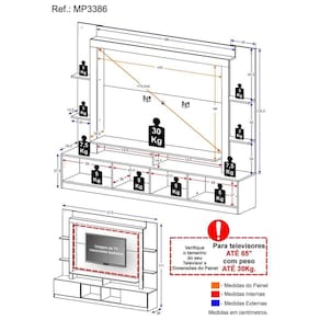 *Devido as variações de tamanho dos televisores no mercado, sugerimos que verifique as medidas da sua TV e compare com o painel antes de efetuar a compra.