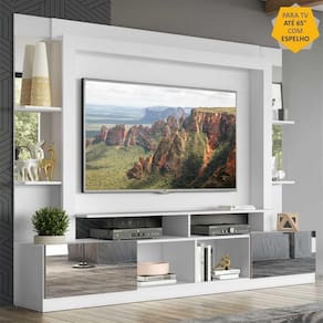O Rack Estante com Painel TV 65" e Espelho Oslo Multimóveis é perfeito para você deixar seu ambiente organizado e muito bem decorado. Produzido em MDP, que garante maior durabilidade e facilidade na limpeza, além de um acabamento superior, possui 2 portas articuladas com um excelente espaço interno para organizar seus pertences, prateleiras para que você possa personalizar a decoração e nichos para acomodar todos os equipamentos. Os detalhes com espelhos nas portas e prateleiras deixam o móvel mais requintado, criando um ambiente moderno e charmoso. Os espelhos são de vidro (o que evita que a imagem fique distorcida) e lapidados, ou seja, passam por um processo para que as bordas não fiquem cortantes, o que garante maior segurança. O painel para TV de até 65 (suporta até 30kg) possui espaçamento para passagem dos fios, que permite deixar os cabos mais organizados. Uma sala de estar moderna, aconchegante e linda para receber os amigos e curtir os melhores filmes e séries.
