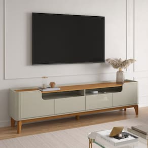Compatível com TVs de até 60 polegadas, o modelo possui nichos abertos para eletrônicos e objetos decorativos, além de portas com ótimo espaço interno para manter tudo sempre organizado.