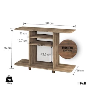 Com dimensões de 0,90m de largura, 0,75m de altura e 0,35m de profundidade, este rack é dimensionado perfeitamente para acomodar TVs de até 32 polegadas e oferece espaço suficiente para componentes de entretenimento.
