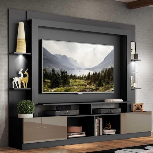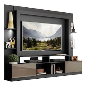 Rack Estante TV 65" com Leds Berlim Multimóveis Preto/Lacca Fumê - Preto