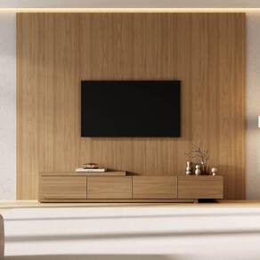 O Rack com painel Aruá traz a essência do estilo japandi, inspirado na simplicidade oriental e no equilíbrio entre forma e função. O rack possui um design baixo com acabamento em Jatobá, ferragens premium, unindo sofisticação e praticidade. Já os painéis são produzidos em chapas de 15mm e oferecem modularidade e personalização do espaço. Versáteis, podem ser utilizados como revestimentos de parede ou painéis de TV, transformando o ambiente com harmonia e elegância. Produto Montado: Sim Acabamento: Finish Foil Acabamento da Porta: Finish Foil Acabamento dos Pés: Finish Foil Altura do Conjunto: 250 cm Altura do Painel: 250 cm Altura do Rack: 35,7 cm Altura dos Pés: 5,5 cm Altura Máxima dos Pés: 5.5000 Ambiente Principal: Sala de Estar codigo_ean: 7900288293688 Complexidade da Montagem: Média: pode ser montado por mais de uma pessoa e/ou necessite de maior conhecimento para montagem Cor: Jatobá Cor do Produto: Jatobá Escala de Brilho: Semi-Fosco Escala de Brilho da Porta: Semi-Fosco Espessura do Painel: 3 cm Espessura do Tampo: 40 mm Fixação na Parede: Sim Itens Inclusos: Painel com Rack, Manual de Montagem e Kit Ferragens Largura do Conjunto: 280 cm Largura do Painel: 280 cm Largura do Rack: 210 cm Linha ou Coleção: Aruá Manual de Montagem e Instalação: https://product-hub-prd.madeiramadeira.com.br/532981325/documents/dfb37abd-2465-4150-9334-da6a411688e83342703342817658335327783.pdf Marca: CabeCasa MadeiraMadeira Material da Porta: MDP Material dos Pés: MDP Material Principal: MDP Montagem Flex: Sim, aparador monta o lado esquerdo e direito Necessita Montagem: Sim Origem do Produto: Nacional Peso do Painel: 82,3 kg Peso do Rack: 44,45 kg Possui Espelho: Não Possui iluminação: Não Possui Passa Cabos: Não Possui Pés: 01 Possui Prateleiras: Não Possui Tomada: Não Possui Vidro: Não Profundidade do Conjunto: 40,5 cm Profundidade do Rack: 37,5 cm Recomendações de Uso, Manutenção e Limpeza: A limpeza deve ser feita com pano macio, levemente umedecido com água e sabão neutro. Em seguida, passe um pano seco para evitar o acúmulo de umidade. Nunca utilize produtos abrasivos, esponjas de aço, alvejantes, álcool em excesso ou solventes, pois esses produtos podem agredir o acabamento e comprometer sua aparência. Sapatas Niveladoras: Não Sistema de Montagem: Parafusos e cavilhas Suporte de TV Universal Incluso: Não Tipo de Dobradiça/Corrediça da Porta: Metálica Tipo de Puxador da Porta: Embutido