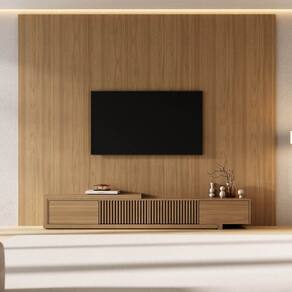 O Rack com painel Aruá traz a essência do estilo japandi, inspirado na simplicidade oriental e no equilíbrio entre forma e função. O rack possui um design baixo com acabamento em Jatobá, ferragens premium, unindo sofisticação e praticidade. Já os painéis são produzidos em chapas de 15mm e oferecem modularidade e personalização do espaço. Versáteis, podem ser utilizados como revestimentos de parede ou painéis de TV, transformando o ambiente com harmonia e elegância. Produto Montado: Sim Acabamento: Finish Foil Acabamento da Porta: Finish Foil Acabamento dos Pés: Finish Foil Altura do Conjunto: 250 cm Altura do Painel: 250 cm Altura do Rack: 35,7 cm Altura dos Pés: 5,5 cm Altura Máxima dos Pés: 5.5000 Ambiente Principal: Sala de Estar codigo_ean: 7900288293800 Complexidade da Montagem: Média: pode ser montado por mais de uma pessoa e/ou necessite de maior conhecimento para montagem Cor: Jatobá Cor do Produto: Jatobá Escala de Brilho: Semi-Fosco Escala de Brilho da Porta: Semi-Fosco Espessura do Painel: 3 cm Espessura do Tampo: 40 mm Fixação na Parede: Sim Itens Inclusos: Painel com Rack, Manual de Montagem e Kit Ferragens Largura do Conjunto: 280 cm Largura do Painel: 280 cm Largura do Rack: 210 cm Linha ou Coleção: Aruá Manual de Montagem e Instalação: https://product-hub-prd.madeiramadeira.com.br/778809738/documents/5a704b65-8d9a-4dfc-9893-6f52a5a5883e3342893342817658352121192.pdf Marca: CabeCasa MadeiraMadeira Material da Porta: MDP Material dos Pés: MDP Material Principal: MDP Montagem Flex: Sim, aparador monta o lado esquerdo e direito Necessita Montagem: Sim Origem do Produto: Nacional Peso do Painel: 82,3 kg Peso do Rack: 43,3 kg Possui Espelho: Não Possui iluminação: Não Possui Passa Cabos: Não Possui Pés: 01 Possui Prateleiras: Não Possui Tomada: Não Possui Vidro: Não Profundidade do Conjunto: 39 cm Profundidade do Rack: 36 cm Recomendações de Uso, Manutenção e Limpeza: A limpeza deve ser feita com pano macio, levemente umedecido com água e sabão neutro. Em seguida, passe um pano seco para evitar o acúmulo de umidade. Nunca utilize produtos abrasivos, esponjas de aço, alvejantes, álcool em excesso ou solventes, pois esses produtos podem agredir o acabamento e comprometer sua aparência. Sapatas Niveladoras: Não Sistema de Montagem: Parafusos e cavilhas Suporte de TV Universal Incluso: Não Tipo de Dobradiça/Corrediça da Porta: Metálica Tipo de Puxador da Porta: Embutido