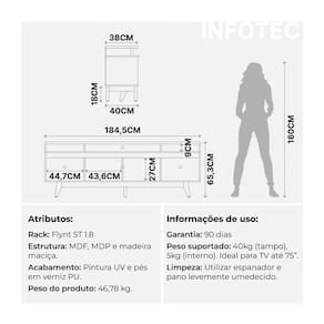 Suporte para TV de até 75 Tampo amplo ideal para TVs grandes, além de objetos decorativos e eletrônicos