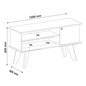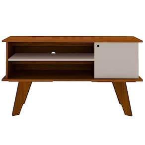 Rack Frank para TV até 50 Polegadas 1 Porta Artely Com o Rack Frank para TV até 50 Polegadas 1 Porta Artely, sua sala de estar vai ficar perfeita para te proporcionar bons momentos de lazer em frente à televisão. Isso porque, estruturado para deixar o centro de entretenimento completo, ele possui espaço para você acomodar sua TV e deixá-la numa posição agradável, além de nichos e compartimento interno para receber aparelhos eletrônicos e armazenar objetos menores. Tudo isso é feito com um design clean especial que destaca os pés inclinados, para seu cantinho ficar como você sempre sonhou. Agora, bom gosto e elegância estarão sempre presentes no seu doce lar.\nMEDIDAS\nAltura 65cm\nLargura 120cm\nProfundidade 40cm\nCARACTERÍSTICAS\nFabricante Artely\nModelo Rack Frank\nGarantia 3 meses\nTipo de produto Rack para TV\nAmbiente Sala de Estar\nEstrutura MDP\nEstilo Retrô\nQuantidade de Portas 01\nIdeal para TVs de até 50 Polegadas\nTipo de Porta Bater\nQuantidade de Gavetas Não Possui\nTipo de Dobradiça Metálica\nAcabamento Pintura UV\nMaterial Pés MDF 25 mm\nNecessita Montagem Sim\nAcompanha Manual de Instalação Sim\nINFORMAÇÕES IMPORTANTES\nObjetos decorativos que porventura apareçam na foto, não acompanham o produto. Não nos responsabilizamos pela montagem/instalação dos produtos.\nMontagens, desmontagens e instalações são responsabilidades do cliente. Indicamos que contrate uma empresa de montagem ou um montador de sua confiança.\nAlém disso, favor verificar se os pés e acessórios estão dentro do forro inferior do produto. Em suma, todas as informações divulgadas sobre o produto são de responsabilidade do Fabricante.\nAs cores do produto podem variar de acordo com o seu monitor, a iluminação do ambiente em que você está e até mesmo a sua percepção visual. Além da cor, pequenos detalhes e acabamentos podem não ficar evidentes na foto, por isso as imagens são meramente ilustrativas.