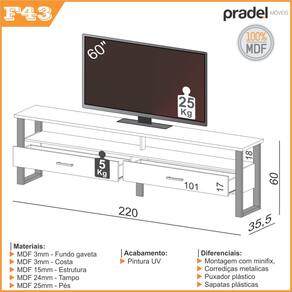 Produzido em 100% MDF e com pintura UV de 6 camadas, o rack oferece durabilidade e resistência. Suas duas gavetas espaçosas com corrediças metálicas permitem organizar objetos diversos, mantendo a sala sempre arrumada. Além disso, o amplo tampo acomoda TVs de até 75 polegadas, proporcionando uma experiência de entretenimento completa.