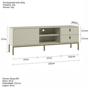 Rack Industrial Frizado Dior P/Tvs até 65 Polegadas 162cm 2 Gavetas Off White - Olivar Móveis - Branco