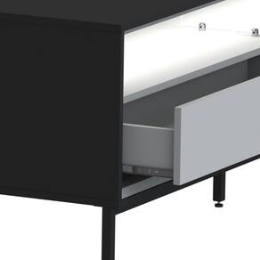 O Rack Ind. Led Fusion é um produto com um design industrial para quem gosta de um estilo mais urbano e contemporâneo, um dos seus diferenciais é um Kit de Neon em Led com luz quente no tampo superior, iluminando todo o Rack, inclusive refletindo esta iluminação em um divisor em vidro, valorizando-o e deixando o ambiente agradável e aconchegante. Nele possui à volta inteira interna peças em MDF com bordas chanfradas, reforçando e valorizando ainda mais o produto. Também apresenta um nicho suspenso com duas gavetas com corrediças telescópicas e passa fio para eletrônicos. Sua estrutura é em MDF e MDP de 15 mm e com uma estrutura dos pés em metal. É um produto com design de uma pegada industrial onde você personaliza seu ambiente deixando-o exclusivo.