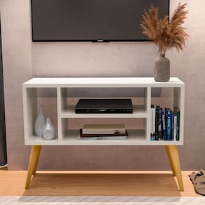 Apresentamos oRack Intense, o móvel que agrega beleza e organização ao seu ambiente. Com linhas refinadas e acabamento impecável, este rack é a escolha ideal para quem busca uma opção prática e estilosa para a decoração. Ele possui 4 compartimentos espaçosos, detalhes sofisticados e é fabricado com materiais de qualidade para proporcionar um toque de classe ao seu espaço. Seus pés em madeira maciça retrô trazem elegância, e seu design cuidadosamente elaborado oferece não apenas estilo, mas também praticidade, tornando-o uma peça única e versátil para complementar sua decoração.