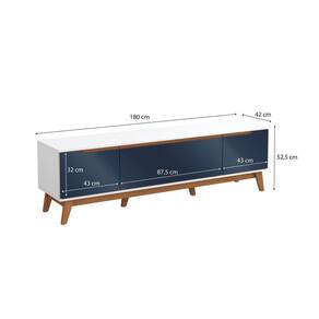 Acabamento: Pintura Fosco / Pintura Touch / Brilho | Cor: Branco/Azul Profundo | Dobradiça: Com Amortecimento | Garantia: 3 meses para de fabricação | Matéria-prima: MDF / MDP | Peso máximo suportado: 30kg | Puxadores: Puxador embutido | Quantidade de portas: 3 | Sistema de montagem: Parafuso Philips / Sistema Allen e Minifix | Tipo de porta: Bater | Altura: 52,5 | Largura: 160 | Profundidade: 42 | Quantidade de caixas de embalagem: 2 | Requer montagem: Sim | Formato do móvel: Rack | Produto: Rack Kappesberg 3 Portas Branco/Azul Profundo 180cm | Tonalidade: Azul | Tamanho: Grande | Material: Madeira | Tipo de material: MDP/MDF