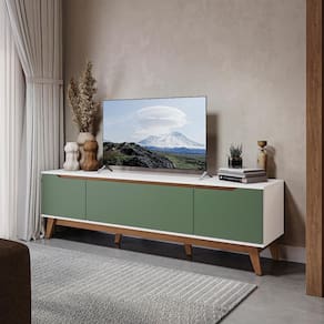 E com sete camadas de pintura, tanto na parte interna quanto na externa, a caixaria conta com acabamento em brilho na cor branca, enquanto as portas, com pintura na cor verde oliva, possuem acabamento fosco. Uma combinação linda e aconchegante, perfeita para compor a sua sala de estar de um jeito único, e remetendo aos tons da natureza, você terá o espaço ideal para preparar suas receitas com praticidade.