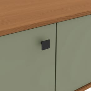 Nas portas, o destaque fica para o sistema de amortecimento, garantindo um fechamento suave e sem ruídos, além de mais durabilidade, e o puxador metálico quadrado proporciona um toque de beleza extra, deixando sua sala de estar perfeita.