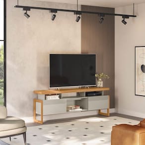 Rack Linea Brasil Esmeralda Nature/off White Transforme sua sala de estar com o Rack Linea Brasil Esmeralda, uma peca que combina estilo e funcionalidade de forma perfeita! Com um design sofisticado e prateleiras amplas, ele e ideal para acomodar sua TV, eletronicos e itens decorativos, trazendo organizacao e elegancia ao ambiente. Feito com materiais de alta qualidade, garante durabilidade e um acabamento impecavel que se adapta a diferentes estilos de decoracao. Nao perca a chance de valorizar seu espaco, adquira ja o seu Rack Esmeralda e leve mais charme e praticidade para o seu lar! MODELO: Esmeralda Com duas portas de correr em detalhes frisados e puxadores embutidos Para TVs de ate 70 polegadas Tampo em MDP de 12mm Possui 3 nichos Porta correr Pes laterais com moldura