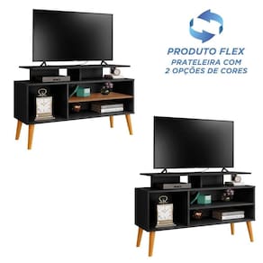 - 3 nichos e 2 prateleiras, oferecendo amplo espaço para organizar equipamentos de som, DVDs, livros, decorações e outros acessórios.