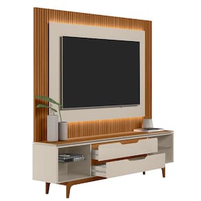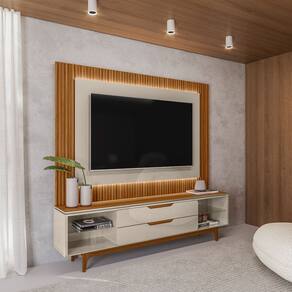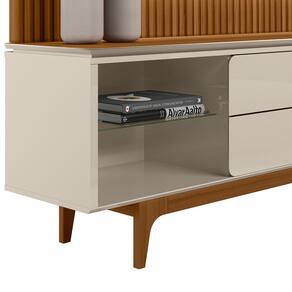 Nicho: 4 nichos Porta: não há Gavetas: 2 gavetas com corrediças telescópicas Prateleiras: 2 prateleiras de vidro Pé: 5 pés de madeira maciça com altura de 18cm