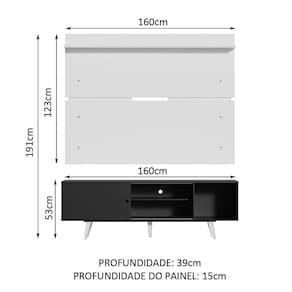 Itens inclusos: - Um (1) Rack de 53 cm de altura x 160 cm de largura x 39 cm de profundidade e pés em PVC - Um (1) Painel de 123 cm de altura x 160 cm de largura x 15 cm de profundidade