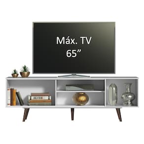 Na parte de trás do rack há uma abertura para a passagem dos fios, um diferencial a mais para a comodidade no dia a dia. Para completar, os pés conferem beleza e melhor sustentação ao móvel.
