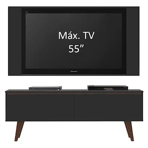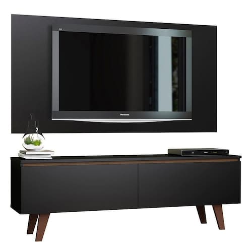 O Painel comporta TVs de até 55 polegadas. É de fácil instalação, possui passa fios e capas decorativas para esconder os parafusos de fixação. O produto segue com as ferragens necessárias para fixar o painel em parede de alvenaria. Não acompanha suporte para fixação da TV.