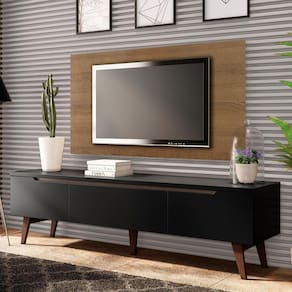 Itens inclusos: - Um (1) Rack de 50 cm de altura x 180 cm de largura x 40 cm de profundidade - Um (1) Painel para TV de 72 cm de altura x 136 cm de largura (não acompanha suporte para fixação da TV)