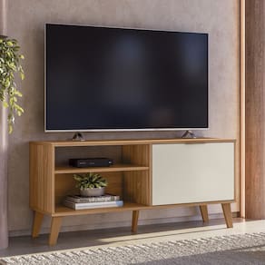 Características: Estrutura em MDP Pintura UV Porta basculante Nicho decorativo Pés em PVC Ideal para TV até 50 Polegadas.