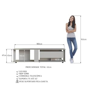 - Modelo: Rack Moderno Com LED 01 Gaveta 180cm PRODDY