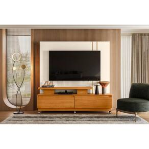 Possui 2 gavetas com corrediças telescópicas, entrada para TV de 1,800m x 1,185m e 6 rodízios, que proporcionam mobilidade e praticidade no uso. Seu sistema de montagem Girofix assegura facilidade, enquanto o design minimalista, sem puxadores, mantém o ambiente elegante e organizado.