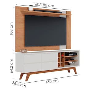 Rack Noronha E Painel Leme Extensível combinam modernidade, praticidade e funcionalidade para sua sala. Produzidos em MDP (25/ 15 mm), com acabamento em pintura UV texturizada. Conjunto possui portas com detalhes chanfrados e fechamento tipo toque, adega para 6 garrafas (divisória inclusa, montagem opcional), prateleiras, passa fios embutidos e 4 pés em madeira maciça (Pinus 20 cm). Painel com dupla opção de montagem: extensível de 160 a 180 cm, suporta TVs de até 70 polegadas (Rack para TVs de 70 polegadas) com segurança. Estes conjunto chegará em sua casa separados em 3 volumes.